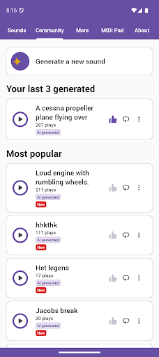 - Custom Sound Sharing: Share your recorded sounds directly with other users within the app, promoting a community of sound creators.